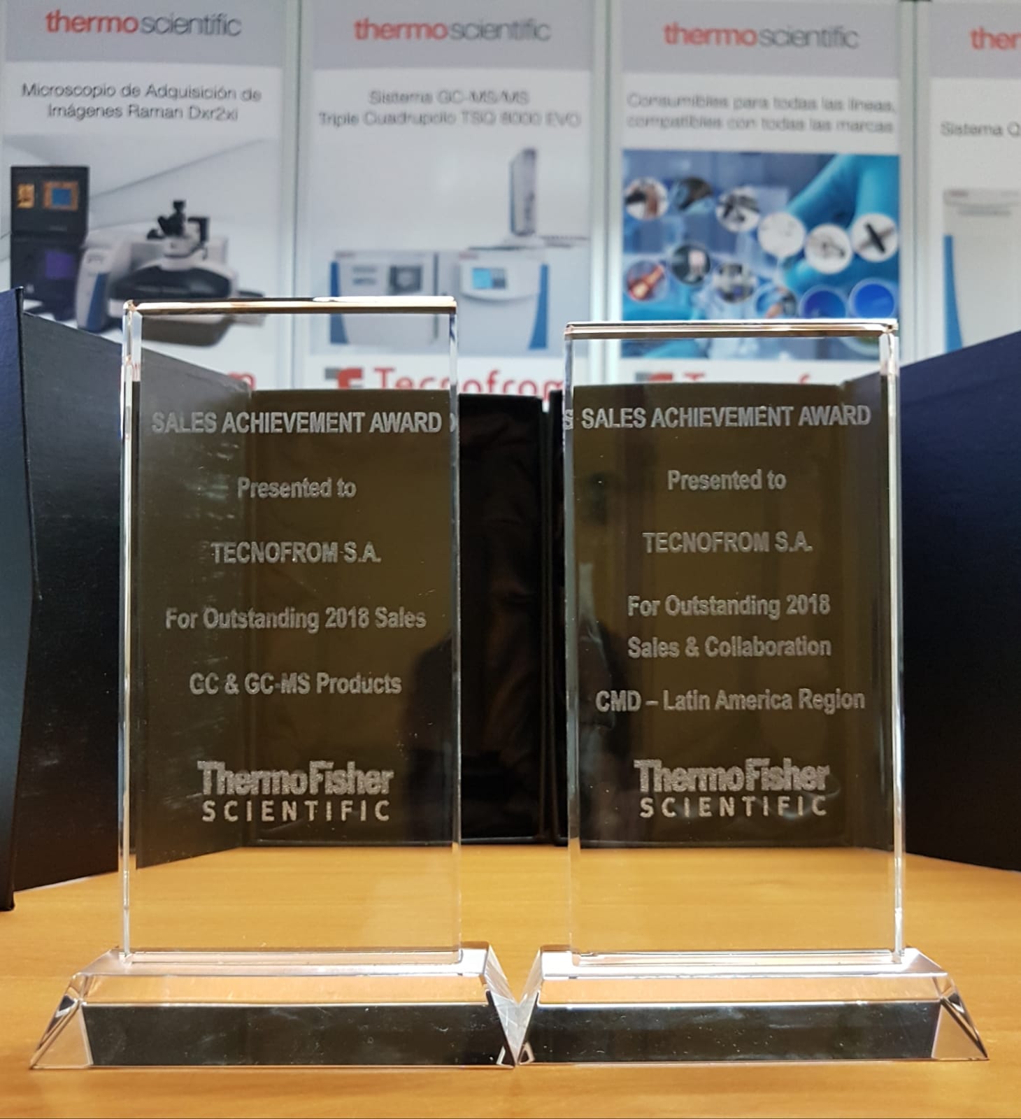 Durante evento de PittCon 2019 llevado a cabo en los Estados Unidos, se realizó una reunion exclusiva para los socios comerciales de Thermo Scientific de toda Lationamérica, donde tuvimos el honor de ser premiados por Thermo Fisher Scientific con dos "Sales Achievement Awards", uno por nuestras ventas sobresalientes en 2018 de productos GC y GC-MS, Y el otro por nuestras ventas y colaboración sobresalientes durante 2018 en el área de CMD (GC, GC-MS, GC-MS/MS, GC MS/MS Orbitrap, IC, HPLC, LC-MS, LC-MS/MS, LC-MS/MS Orbitrap, AAS, ICP, ICP-MS y Análsis Elemental); en la región de Latinoamérica.